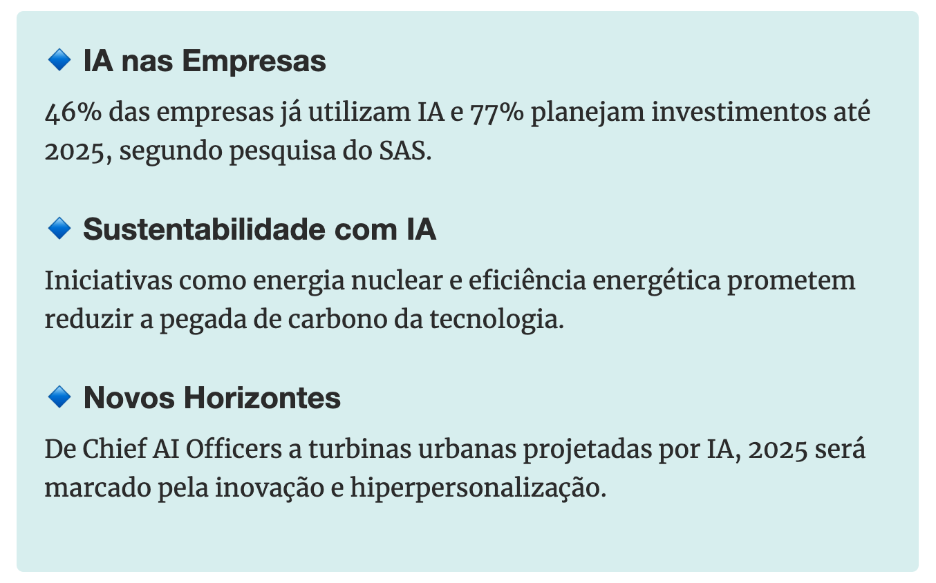fonte: https://mittechreview.com.br/inteligencia-artificial-2025/?srsltid=AfmBOooXXVfaIvB8O_hgrHAUHTSRcV2kpUIfNKpknRlKbrCMjVav5ziz